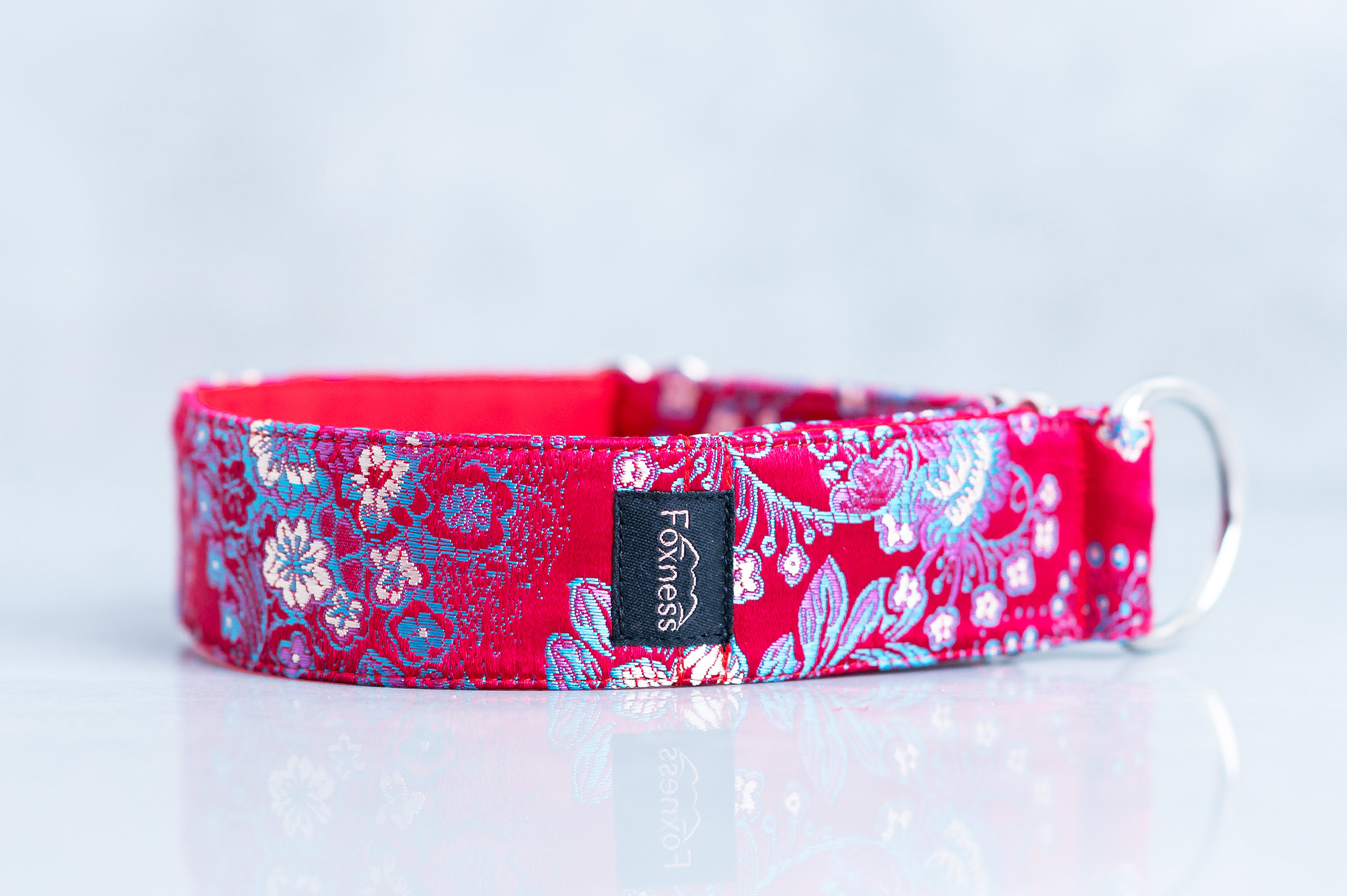 Obroża „Birma Lotus” to wyjątkowa propozycja inspirowana bogactwem azjatyckiej ornamentyki i symboliką kwiatu lotosu. Intensywna, głęboka czerwień tkaniny w połączeniu z misternym, połyskującym wzorem tworzy niezwykle elegancki i wyrazisty dodatek dla psa.