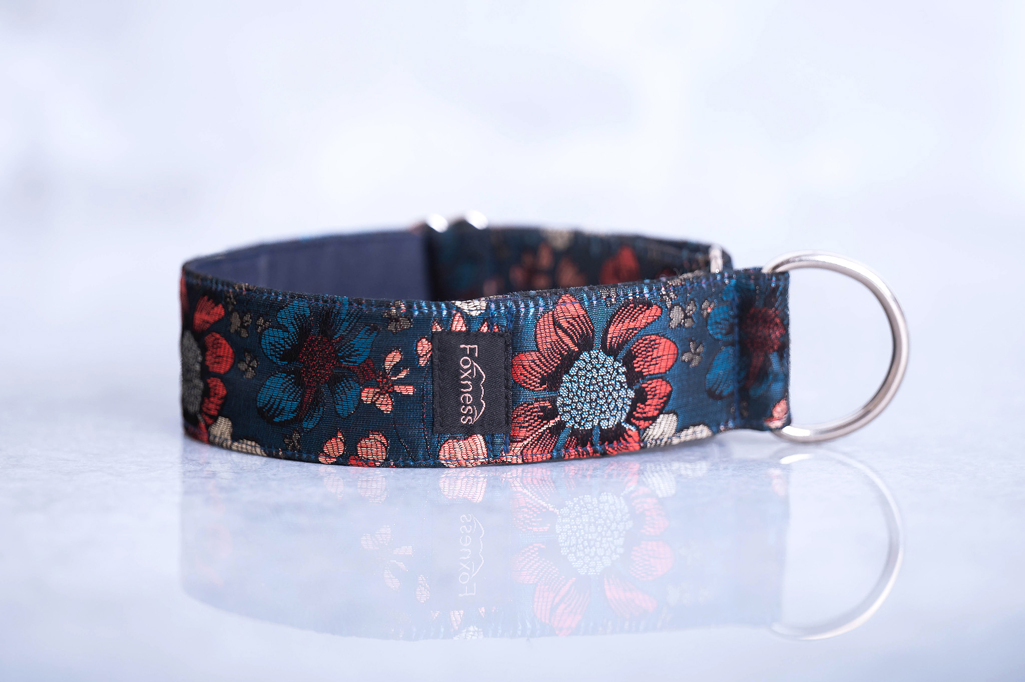 Obroża Cosmos Navy to połączenie elegancji, subtelnego połysku i codziennej wygody, stworzone dla psów, które zasługują na coś wyjątkowego. Wykonana z wysokiej jakości tkaniny żakardowej o delikatnym, kwiatowym wzorze, pięknie mieni się w świetle, nadając obroży wyjątkowej głębi oraz klasy. Całość jest lekka, miękka i komfortowa dla psa, a jednocześnie przyciąga spojrzenia na każdym spacerze.