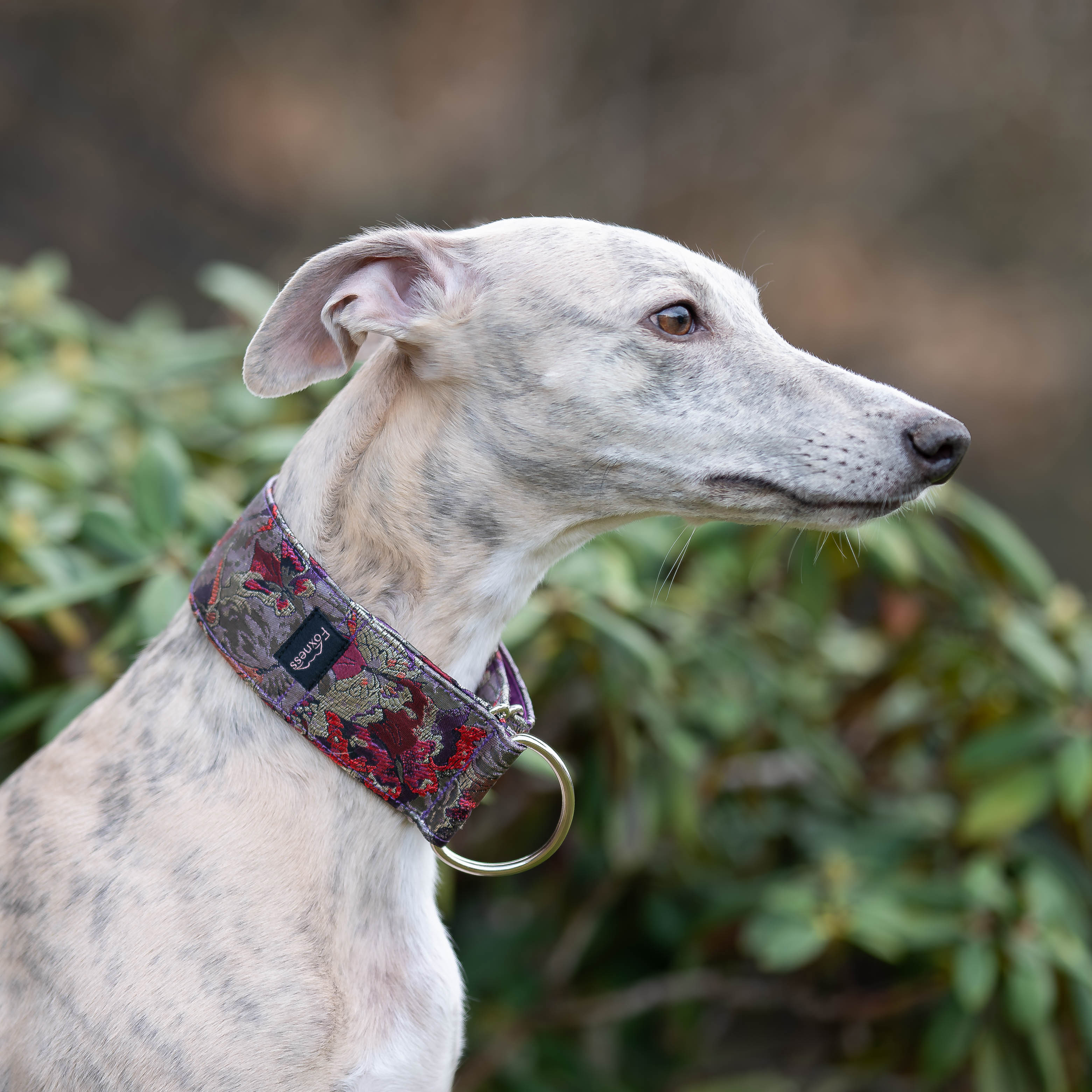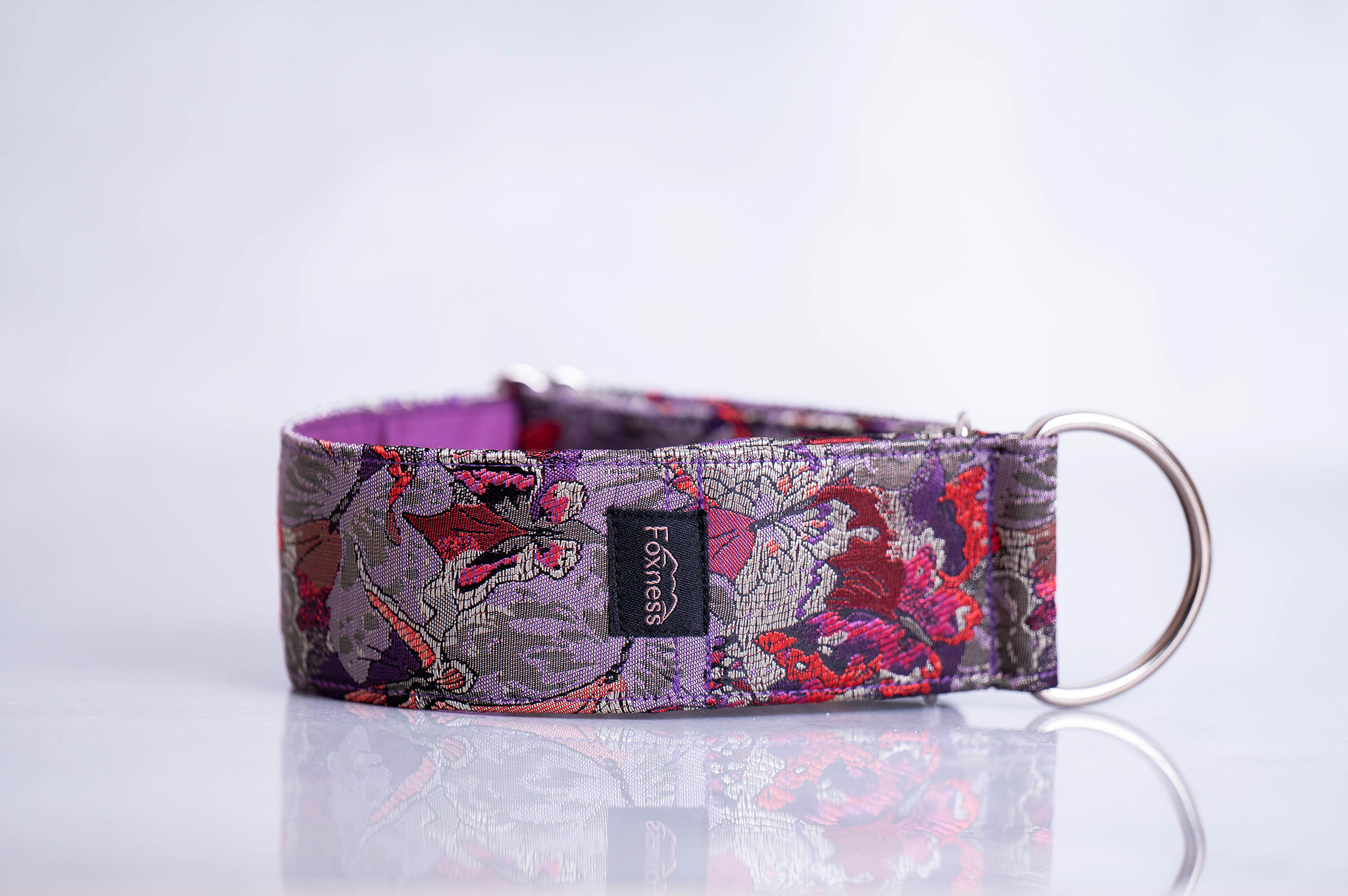Głęboki, fioletowy kolor w połączeniu z ozdobnym wzorem sprawia, że obroża Palleon doskonale sprawdzi się zarówno na co dzień, jak i podczas wyjątkowych okazji, podkreślając indywidualny styl i osobowość psa.