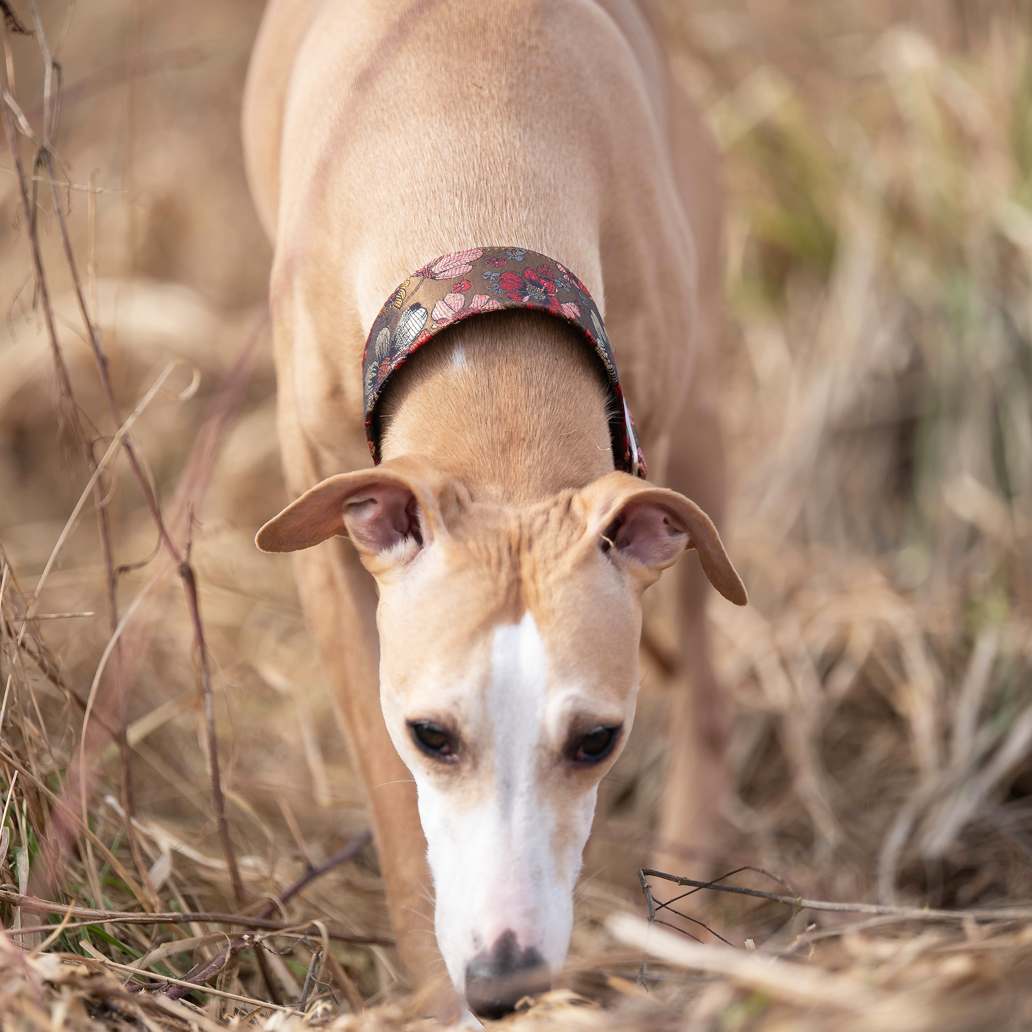 Obroża „Cosmos Brown” półzaciskowa to elegancki, zielony dodatek z delikatnym, kwiatowym wzorem, który subtelnie mieni się w słońcu, nadając wyjątkowego uroku każdemu psu. Wykonana z wysokiej jakości tkaniny żakardowej, obszyta miękką bawełną, delikatnie układa się na szyi, zapewniając pełen komfort noszenia.