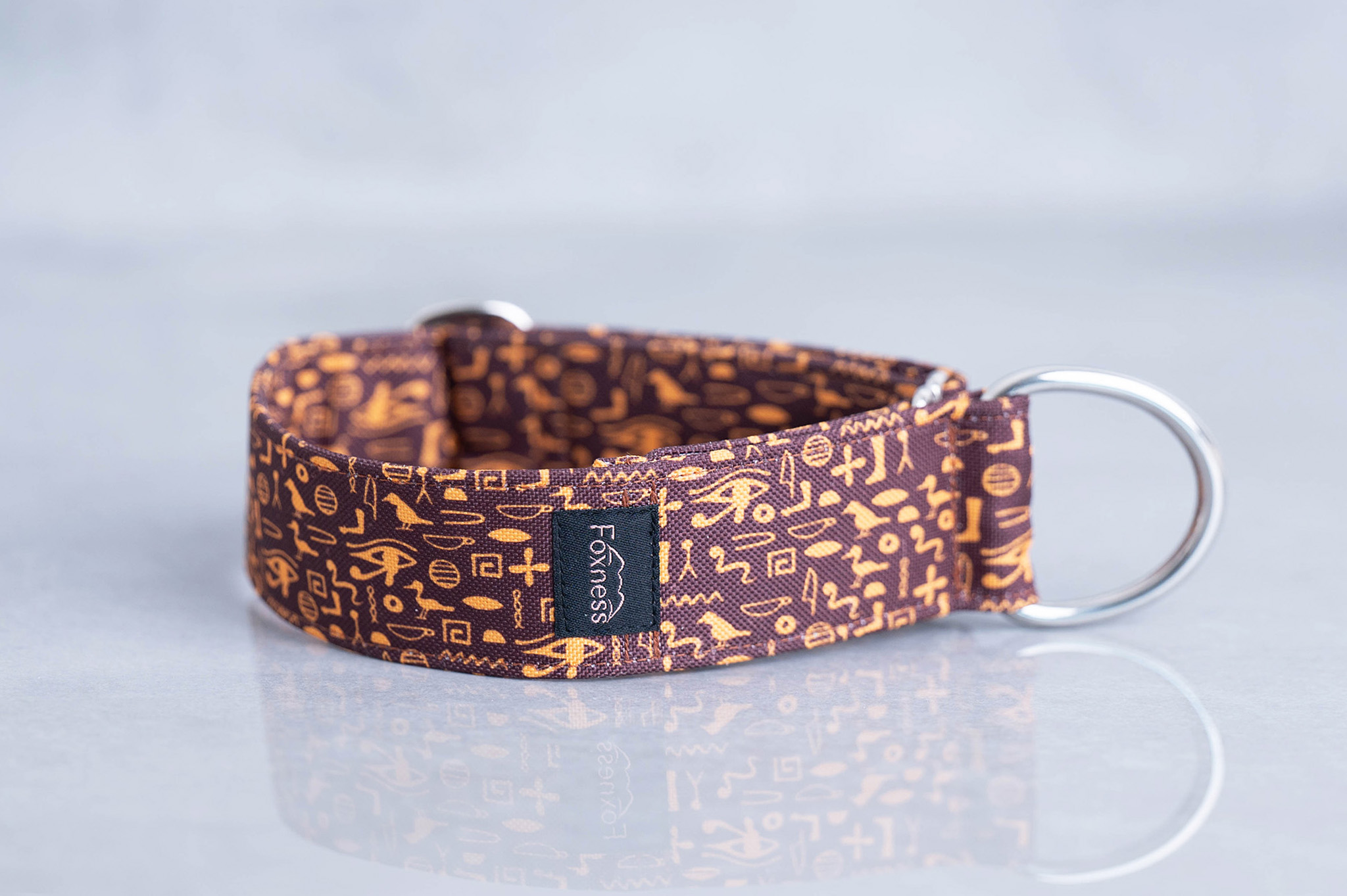Charakterystyczny, dekoracyjny wzór sprawia, że obroża „Hieroglyphics” prezentuje się efektownie zarówno na co dzień, jak i podczas bardziej wyjątkowych okazji.