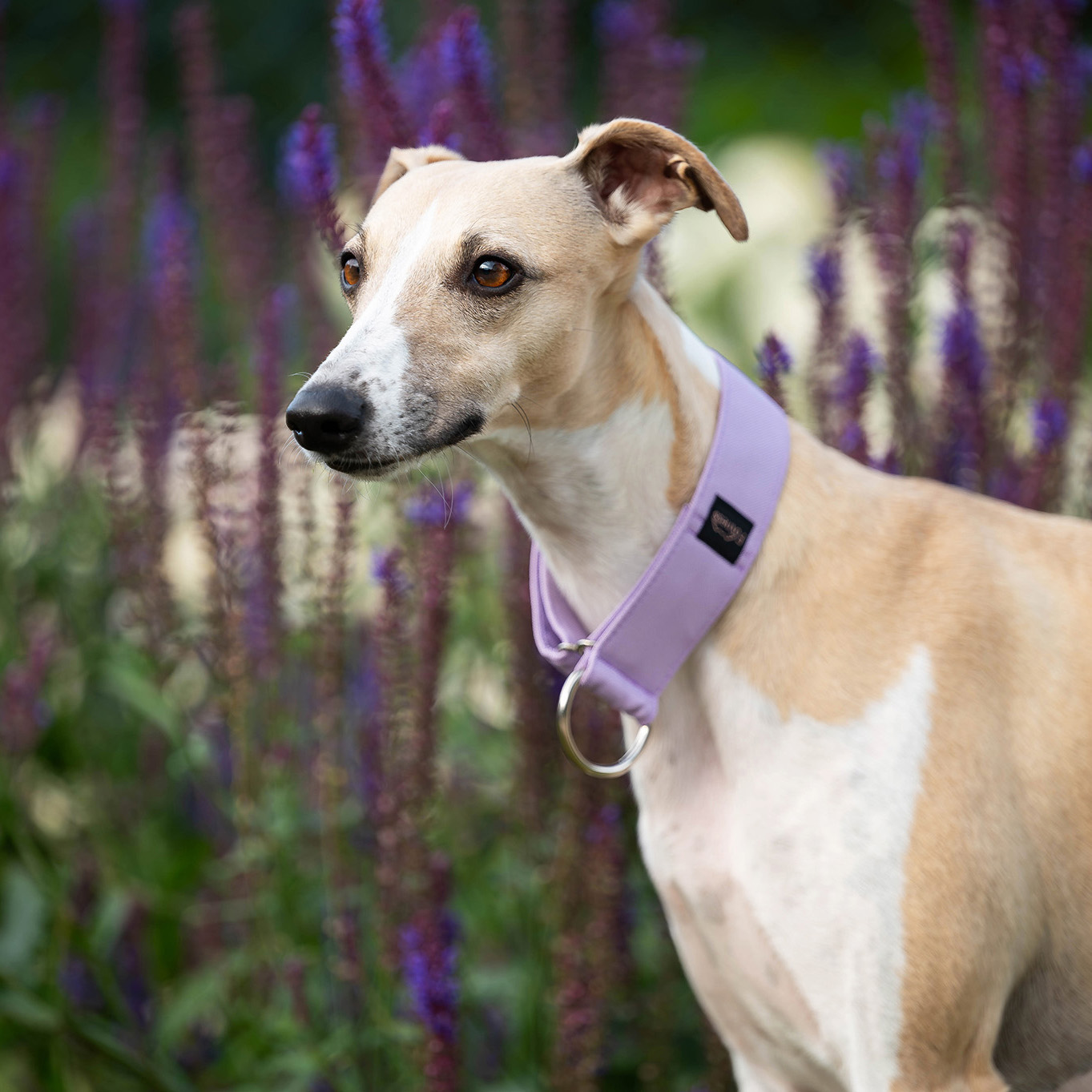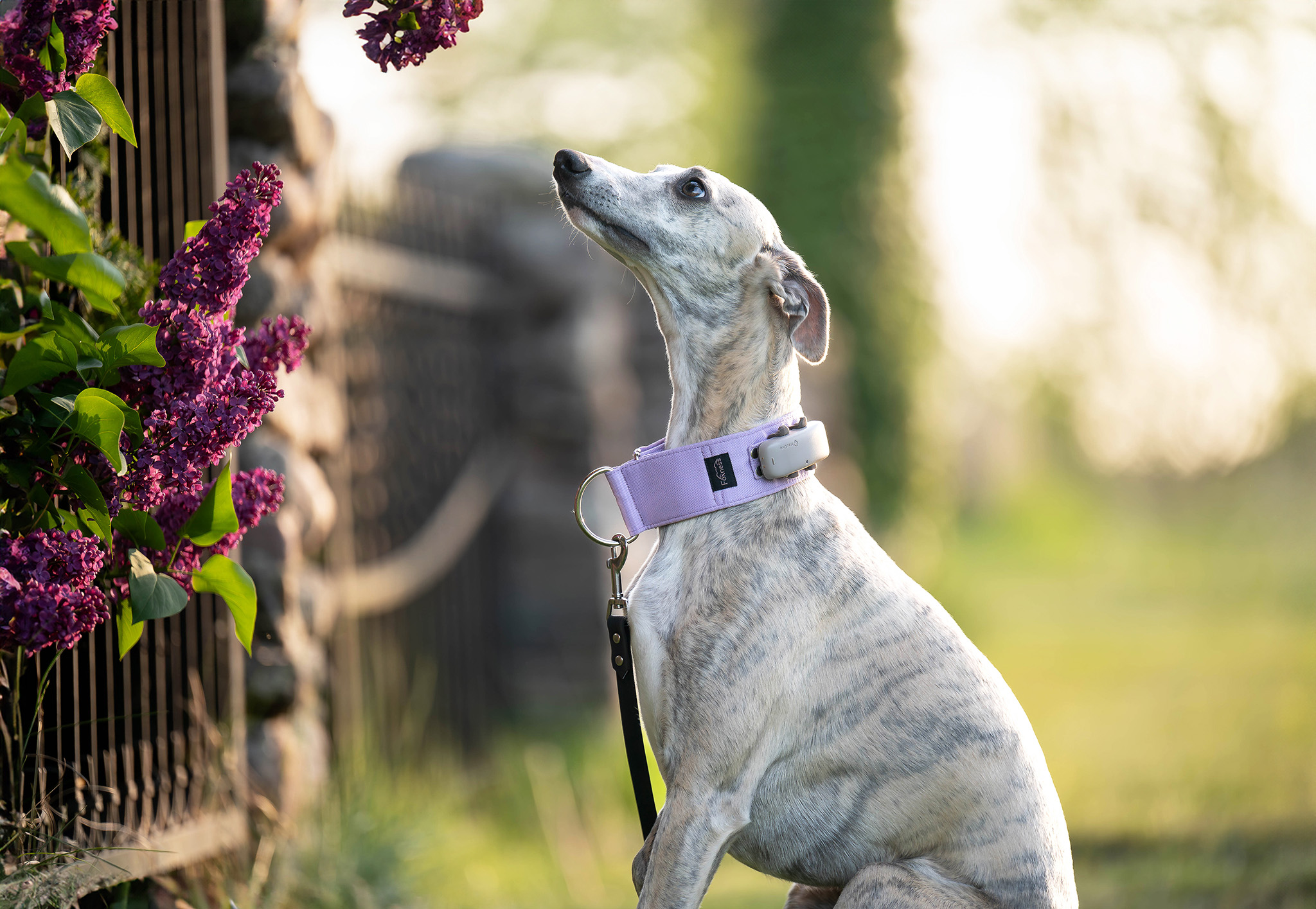 Pastelowy odcień lawendy nadaje obroży lekkości i nowoczesności – pięknie podkreśla zarówno jasną, jak i ciemną sierść, tworząc wyjątkowy, stylowy efekt na co dzień i podczas wyjątkowych chwil.