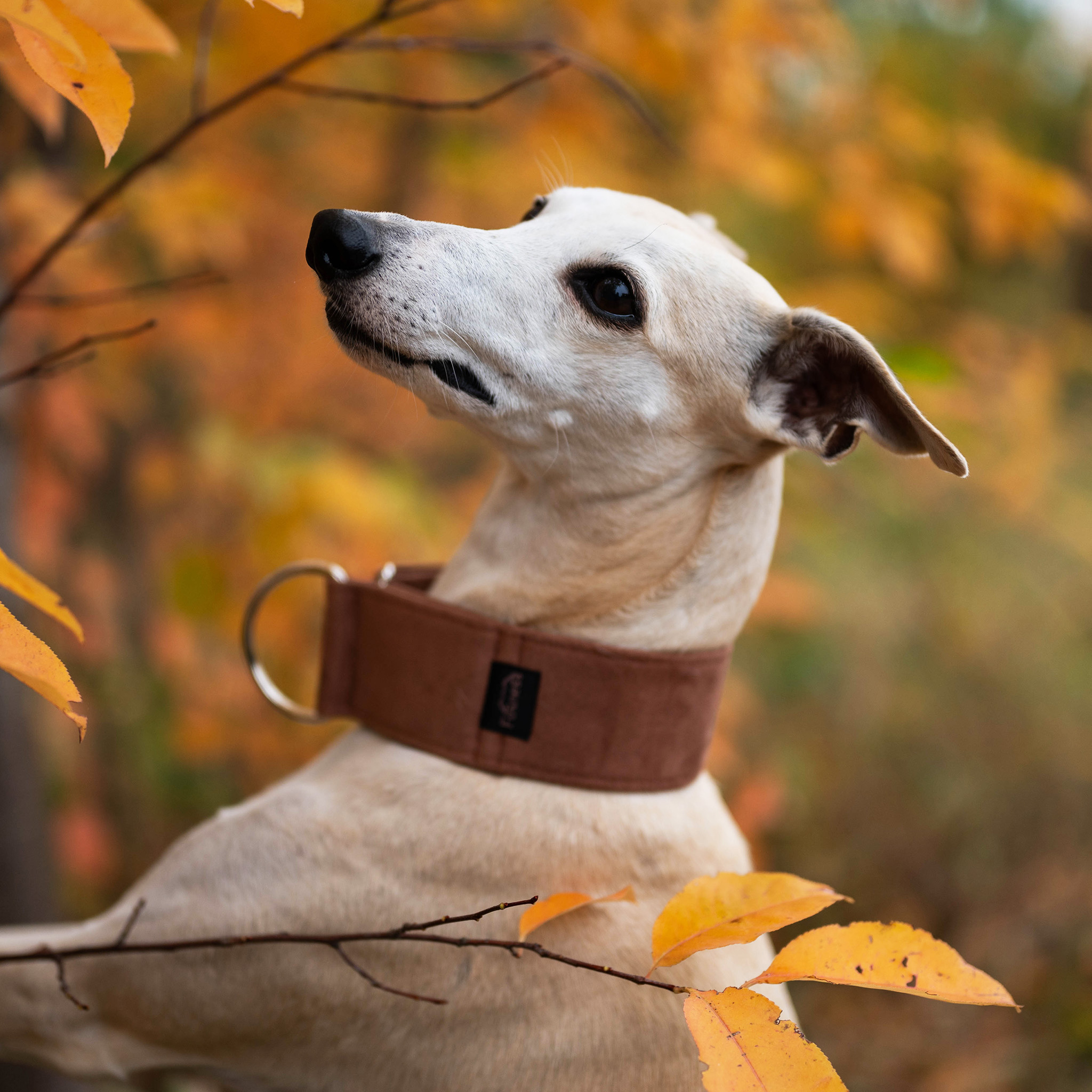 Obroża premium dla psa z nubuku Autumn Walnut 4 cm - elegancka, miękka i lekka