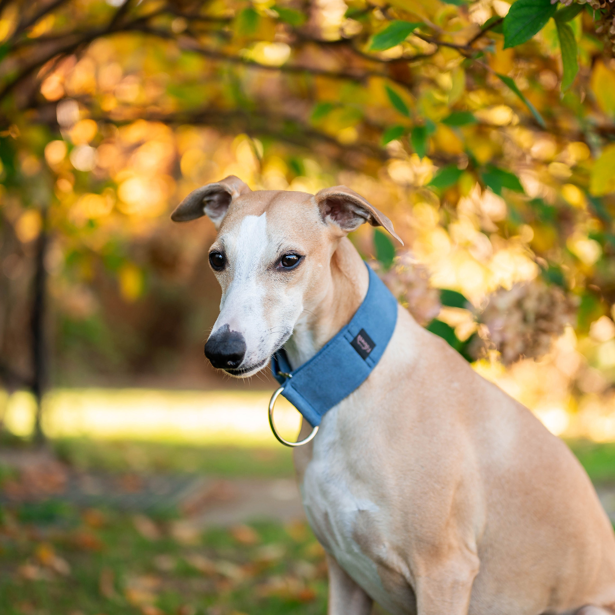 Obroża premium dla psa z nubuku Harbor Blue 4 cm - elegancka, miękka i lekka