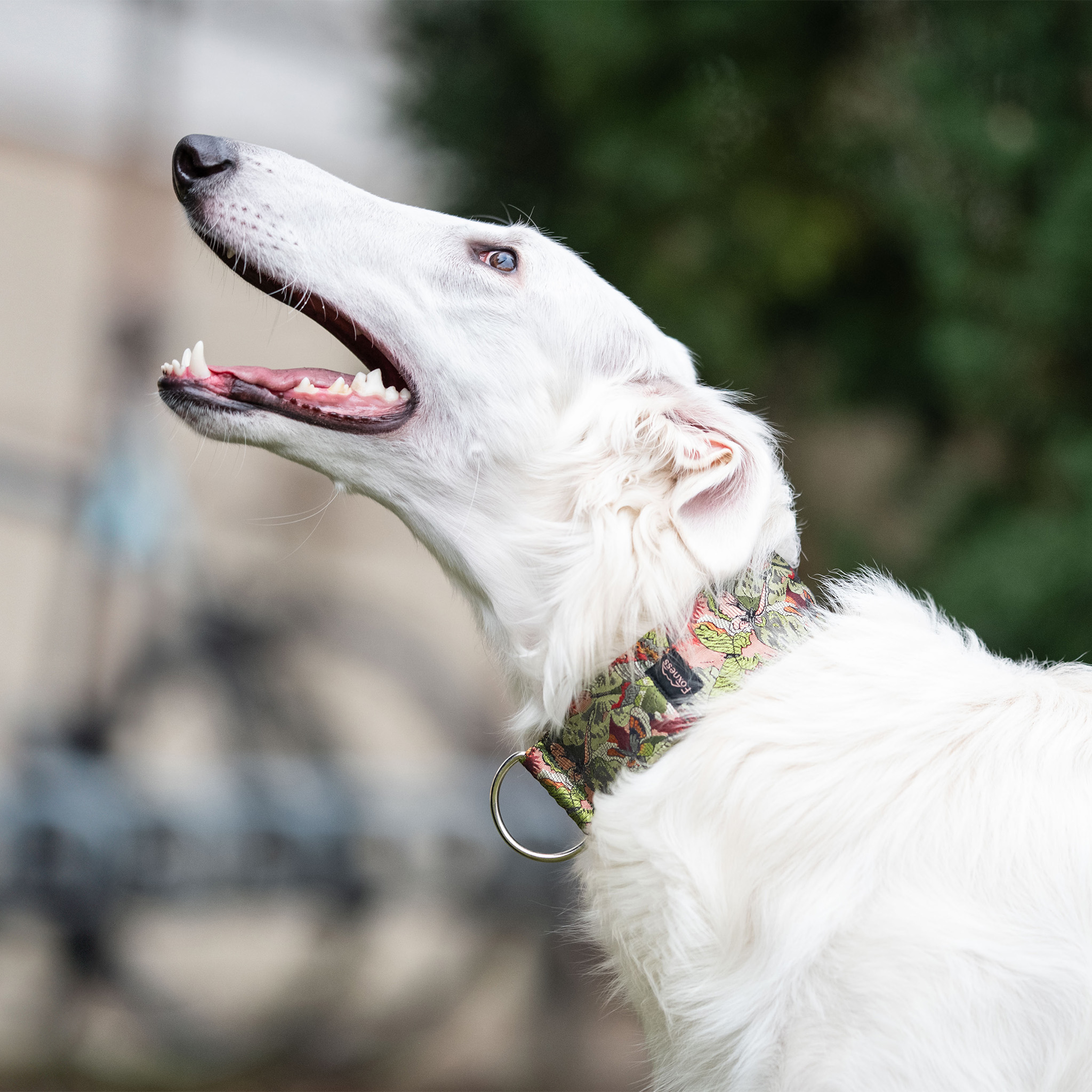 Obroża ozdobna półzaciskowa dla psa Cosmos Green 5 cm - ekskluzywna, migocząca obroża żakardowa, lekka i komfortowa