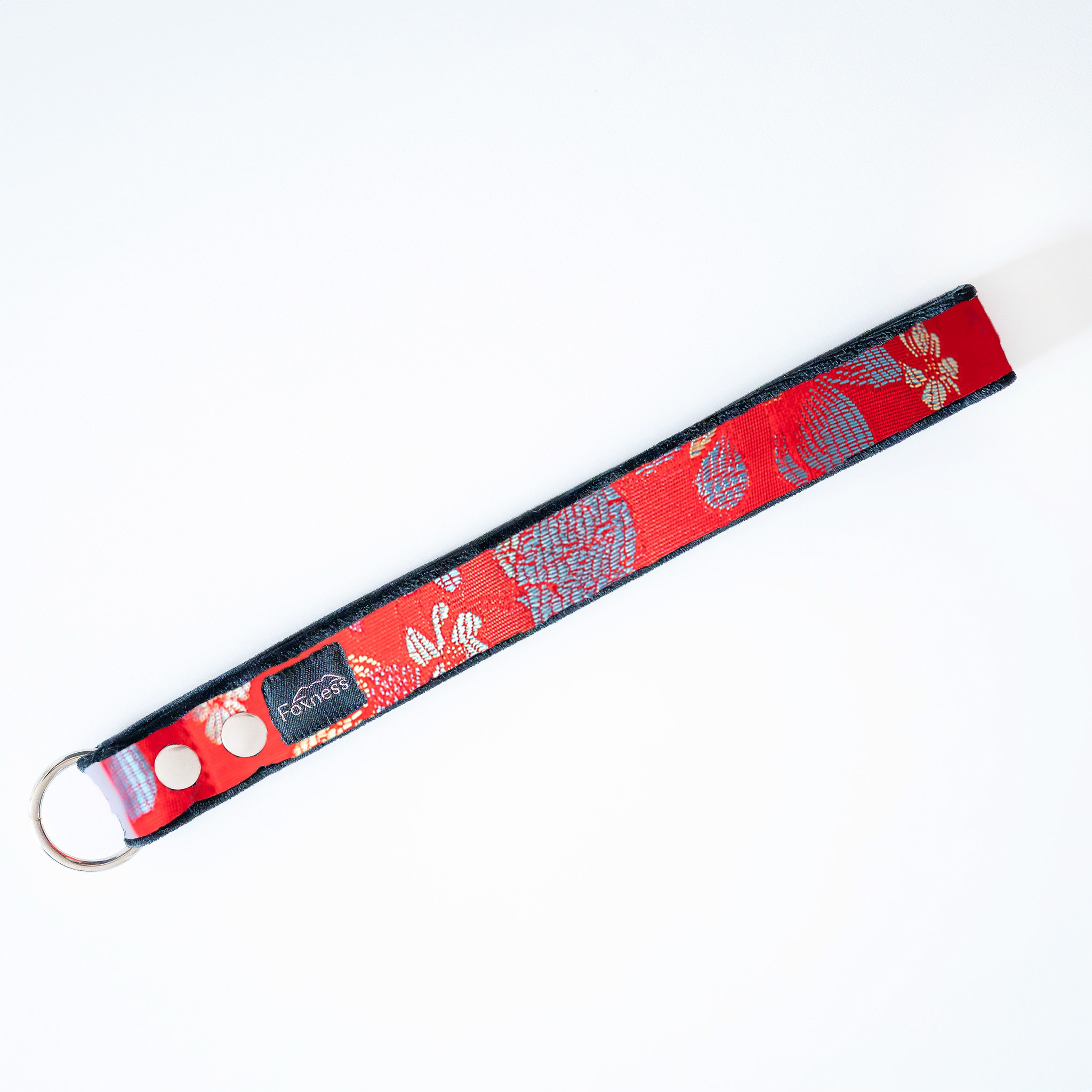 Rączka do smyczy dla psa Cosmos Red - ekskluzywna, migocząca obroża żakardowa, lekka i komfortowa
